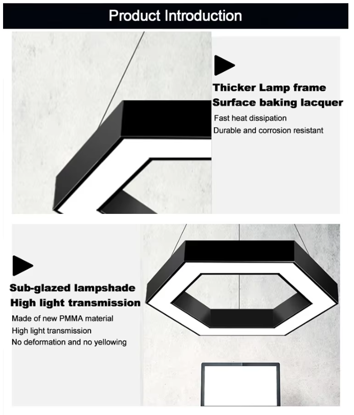 Elevate your workspace with the sleek sophistication of the LED Hexagon Ring Hanging Light — a minimalist yet impactful lighting solution perfect for modern offices, meeting rooms, reception areas, or creative studios.