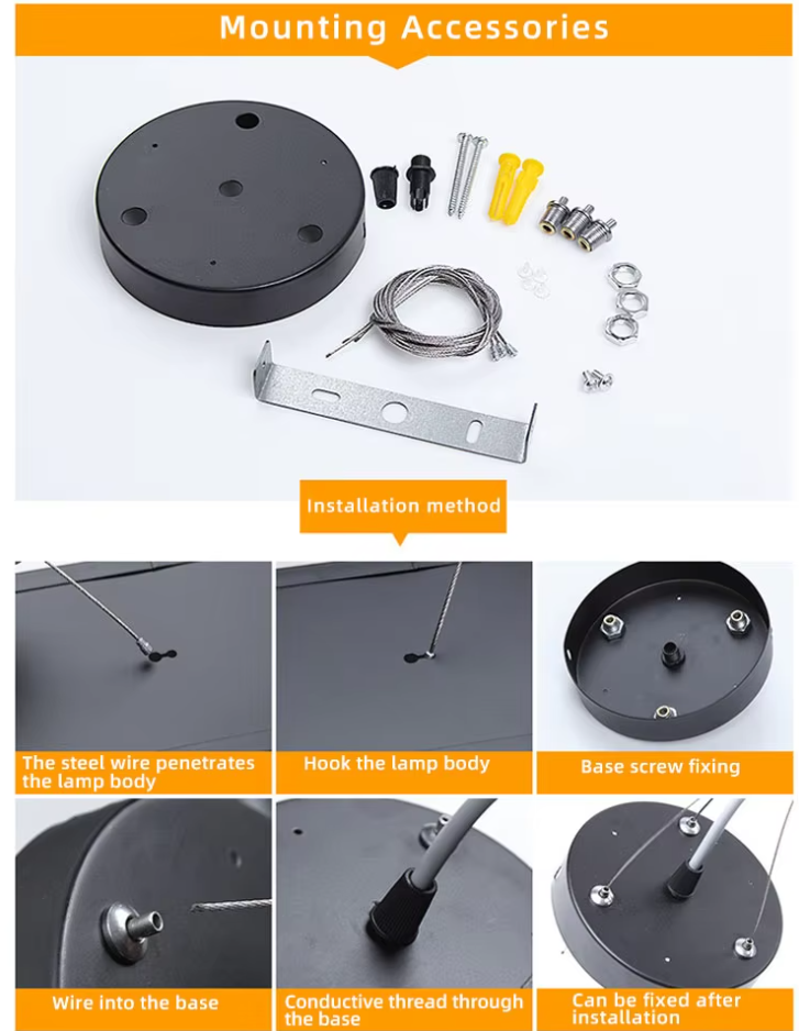 - Suspended Installation: Height-adjustable suspension cables for a floating effect and customizable drop length — ideal for high ceilings or open-concept designs.