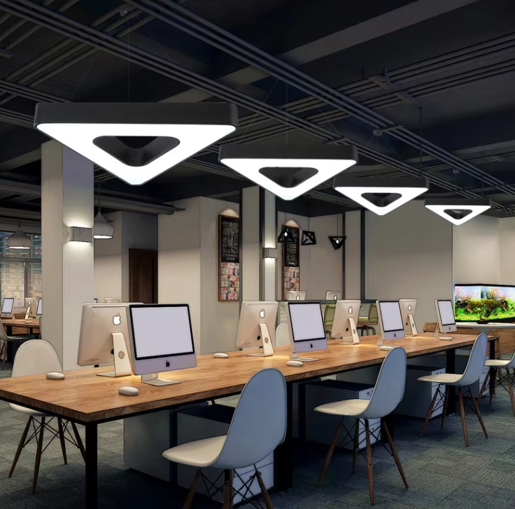 Elevate your workspace with the sleek sophistication of the LED Triangle Ring Hanging Light — a minimalist yet impactful lighting solution perfect for modern offices, meeting rooms, reception areas, or creative studios.